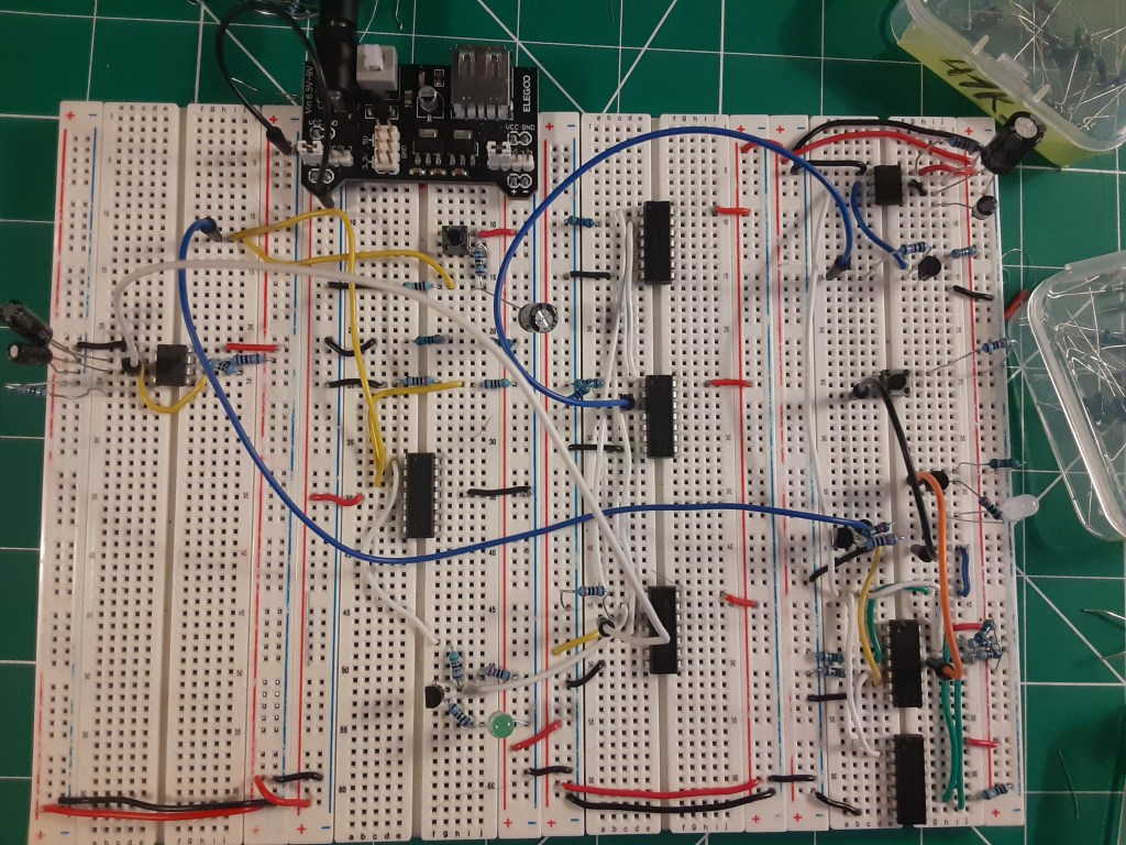 Altium was used in the design process. First, a schematic was created. The schematic was then exported into the PCB editor. I used through-hole components and a via connected the ground plane on the bottom layer. After completing the layout, I exported Gerber and Drill files to a PCB manufacturer. Once the PCBs arrived, I soldered the components into the board.
